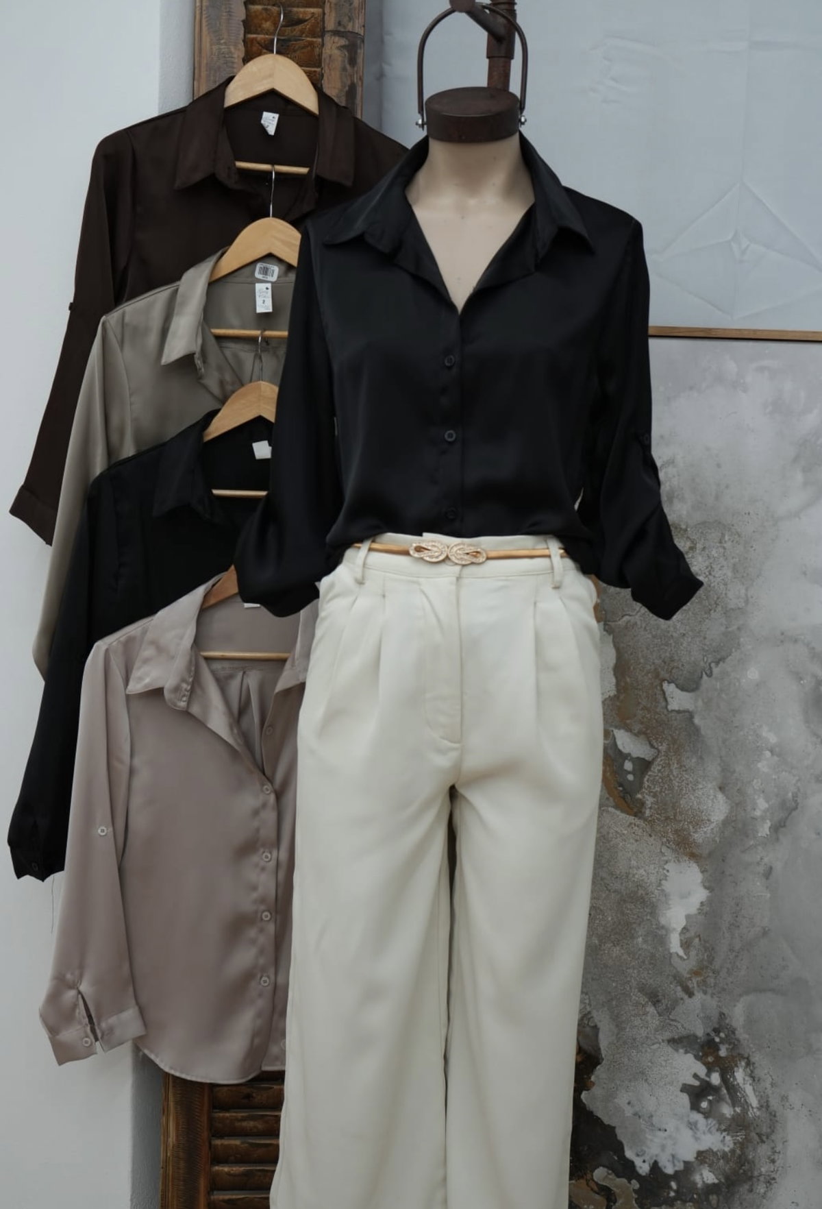 Camisa Satén clásica manga larga