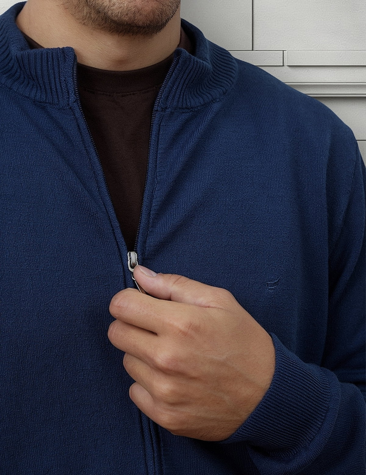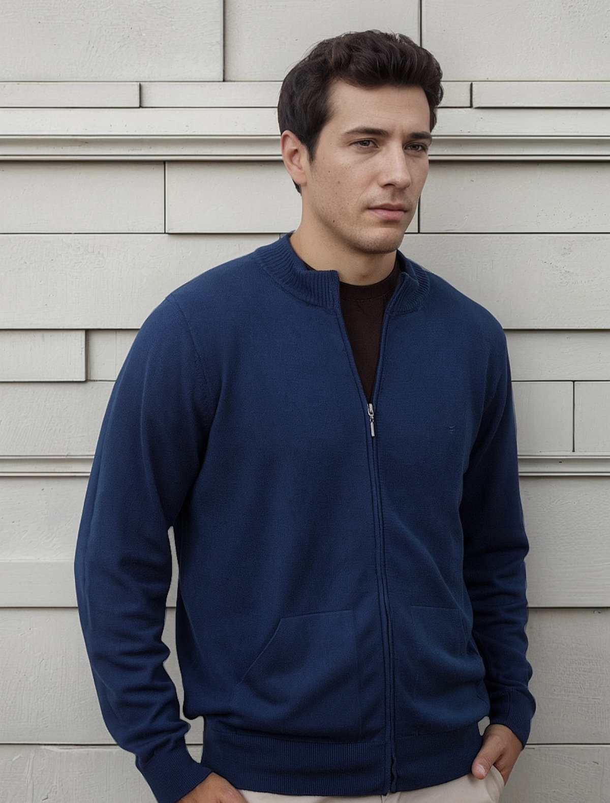 Campera con cierre y bolsillos. Detalle de bordado.