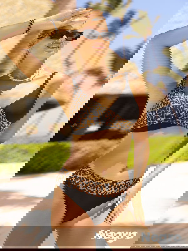 Malla Top corpiño cruzado y Tiro corto cintura doble animal. Almohadillas removibles. Din Dan