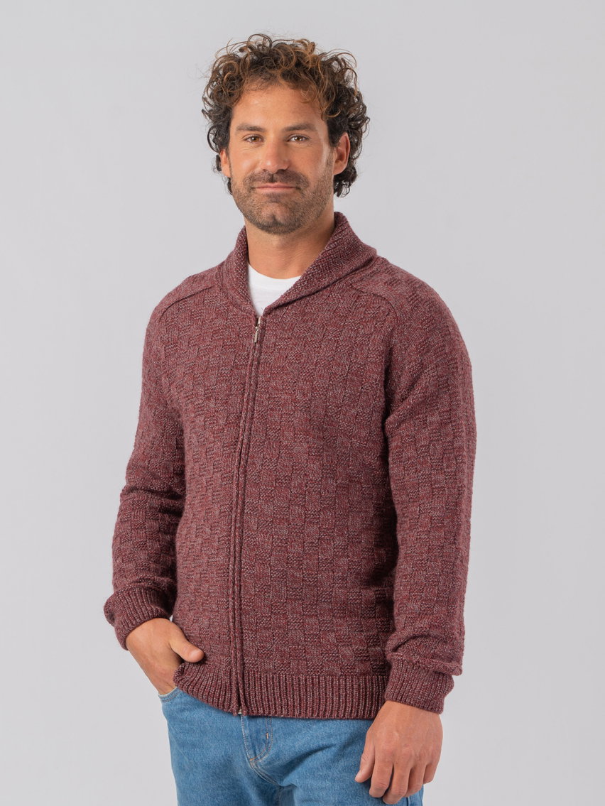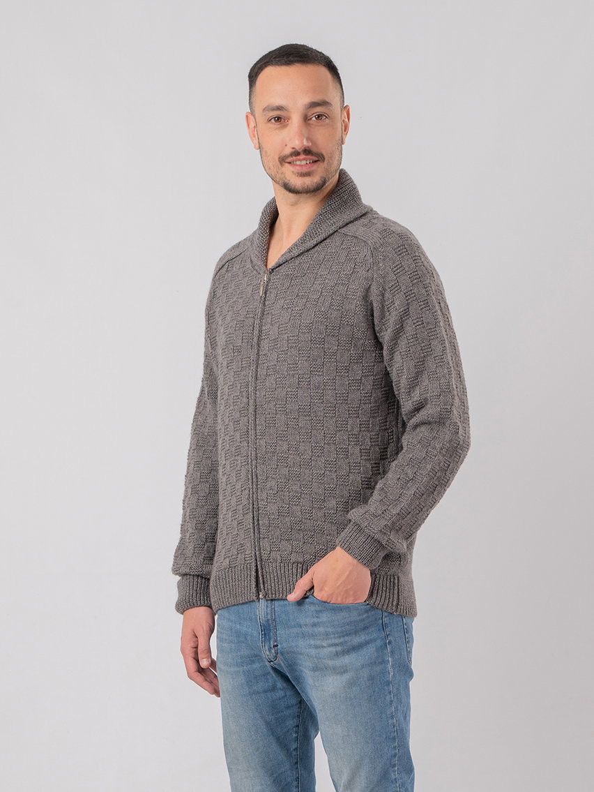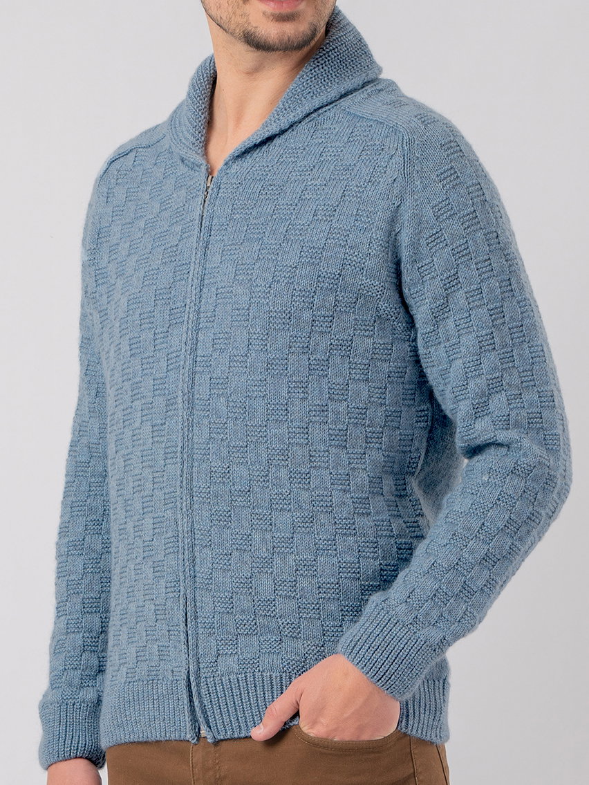 Campera con cierre y bolsillos. Trabajo de punto en delantera y mangas.