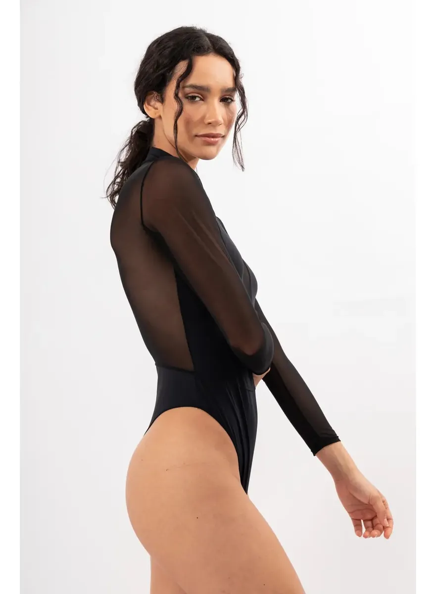 Body media polera. Manga larga combinado.