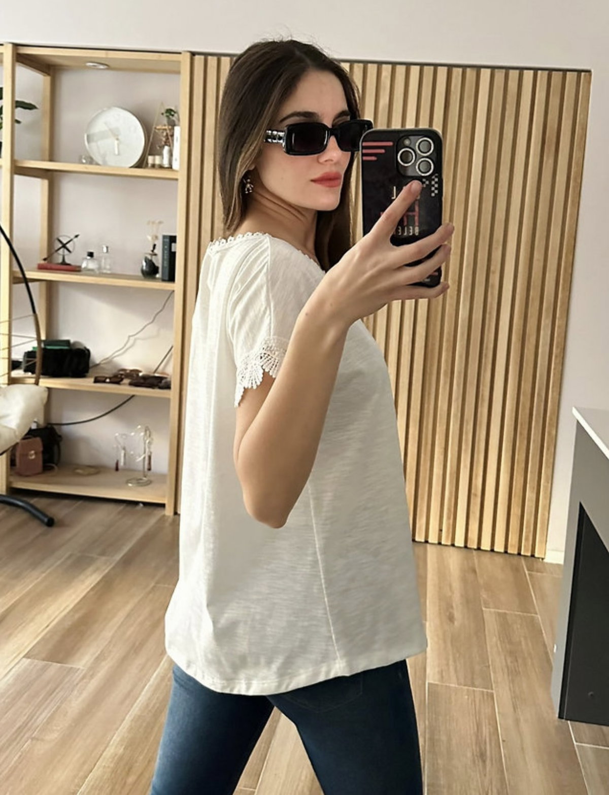 Remera flame con puntilla ancha. TALLE 2, COLOR BLANCO.