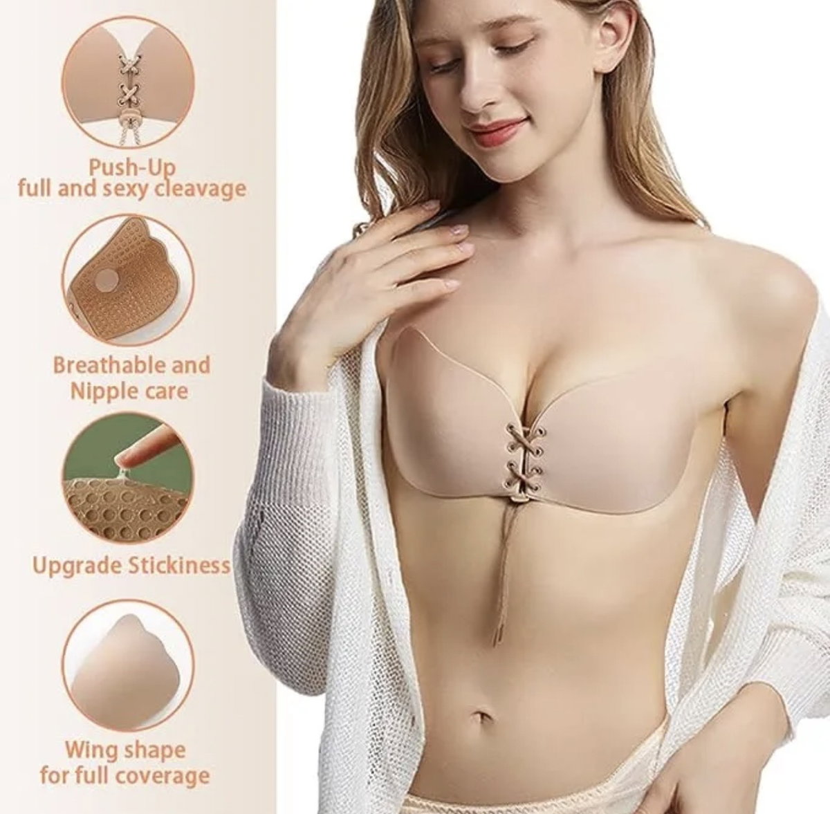 Adhesivo Seguro: El corpiño cuenta con un adhesivo de alta calidad que se mantiene en su lugar durante todo el día, proporcionando un ajuste firme y cómodo sin necesidad de tirantes ni broches.